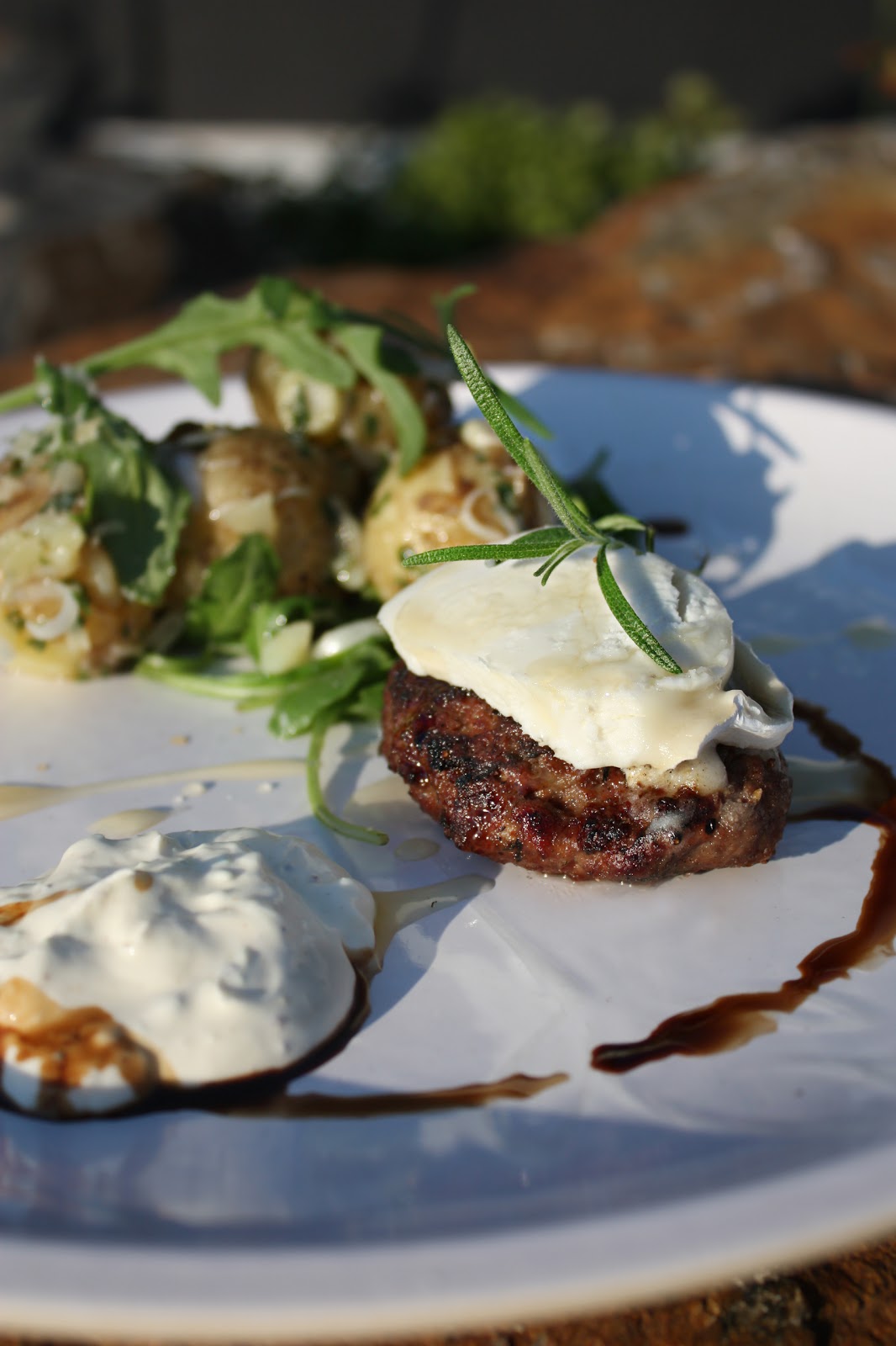 - Blanda samman ägg, riven lök, riven vitlök, ströbröd, grädde, salt, peppar, finhackad chili och rosmarin samt citronzest i en bunke. Låt svälla 5-10 minuter. Blanda sedan ihop med färsen